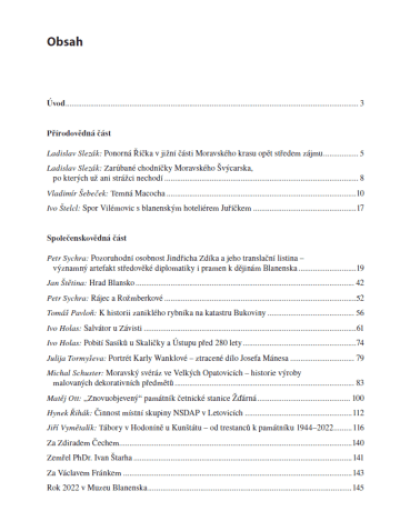 Sborník Muzea Blanenska obsahuje mimo jiné v přírodovědné části např.