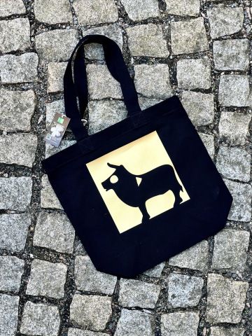 Taška pro fajnšmejkry. Když nevíš co, kup si látkovku! Taška na všechno! Dáš tam nákup, oblečení do školky, boty na cvíčo... Klasika stará dobrá černá taška z Fairtrade bavlny s bronzovým býčkem! A Býčí skálu můžeš mít pořád ssebou. Regionální spolupráce Muzea Blanenska a značky SU.