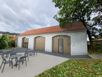 Navržené řešení je zvoleno tak, aby budova byla vnitřně řešena s maximálním využitím prostoru, a to včetně sklepních prostor. Tam se počítá s umístěním technického zázemí s ovládáním plánovaného tepelného čerpadla a vzduchotechniky. Největší plocha stavby je věnována depozitáři pro umístění sbírkových předmětů. Nově je plánováno využití budovy včetně podkroví. Podkroví bude určeno pro besedy, školní exkurze a badatelské návštěvy. Předsálí depozitárních prostor je plánováno pro zpracování předmětů a jejich evidence a dokumentace bez nutnosti nadměrné manipulace. Vzhled budovy respektuje původní provedení omítky včetně štukové výzdoby a zachování kleneb na vnějším plášti budovy, kde byly v minulosti umístěny vstupní otvory pro vjezd kočárů. V novém zpracování se počítá s prosklenými částmi otvorů, kterými bude možné nahlédnout do prostor depozitáře a zároveň budou otvory využity jako vitríny s ukázkou předmětů z produkce Metry Blansko. Zabezpečení prostor bude navázáno do stávajícího systému všech budov využívaných muzeem. Část budovy bude využívána jako sociální zázemí s přístupem z venku tak, aby mohlo zařízení sloužit i pro návštěvníky kulturních akcí v budově zámku. Muzeum pravidelně pořádá koncerty, divadelní představení a další kulturní události. Rekonstrukce a vybudování nového depozitáře přispěje nejen k ochraně sbírkového fondu muzea, ale také k žádoucí úpravě okolí největší kulturní památky ve městě.