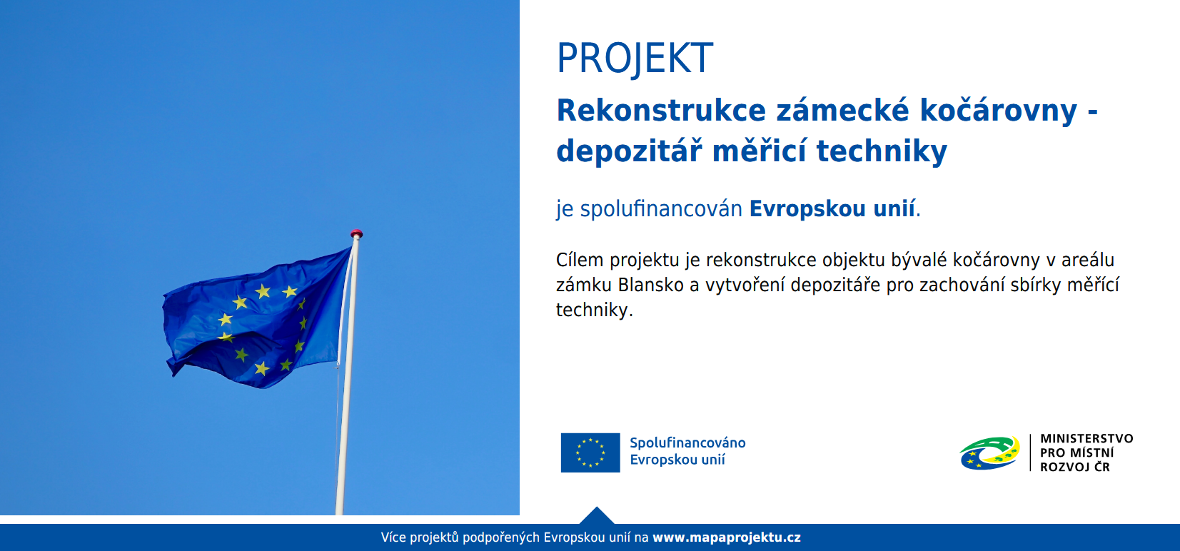 Projekt je financován Evropskou unií, veden pod registračním číslem: CZ.06.04.04/00/22_050/0006224. Další financování je zajištěno z prostředků zřizovatele, Jihomoravského kraje a na souvisejících pracích spojených s rekonstrukcí samotné budovy (přípojky, terénní úpravy a propojení se stávajícími budovami) se finančně podílí také město Blansko. Celkové náklady na realizaci projektu se předpokládají ve výši cca 22 milionů Kč.