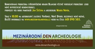 V rámci oslav Mezinárodního dne archeologie pořádá Muzeum Blanenska ve spolupráci s pracovníkem NPÚ v Kroměříži, Mgr. Janem Štětinou, komentovanou vycházku na zříceninu středověkého hradu Blansko nad údolím Punkvy. Součástí prohlídky bude i virtuální prohlídka nové hypotetické rekonstrukce podoby hradu z poloviny 15. století.