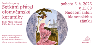 V průběhu setkání bude možnost prohlédnout si také vybrané kousky z muzejní sbírky naživo. Po skončení setkání proběhne prohlídka zámeckých interiérů vyzdobených olomučanskou keramikou.