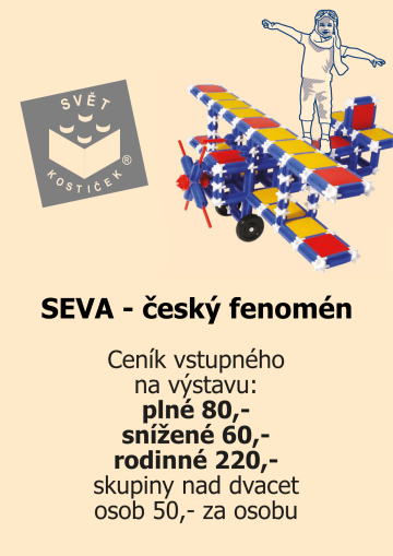 Z české stavebnice SEVA představí autor výstavy, designer modelů do komerčních stavebnic a rekordman ultimátní vlastní tvorbu, do které se řadí např. zvířata z pilotního projektu Noemova archa XXL, deskové hry, hlavolamy, modely vozidel kolových i pásových. Nebude chybět také diorama "Žně" a větrný mlýn - modely zapůjčené výrobcem Seva spojuje.